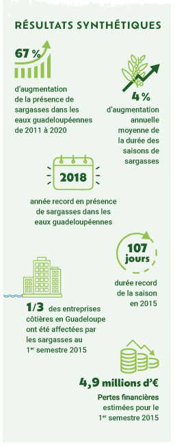 Cet indicateur de menace sargasses vise à regrouper des données pertinentes sur la quantité, la répartition spatiale et temporelle, ainsi que les caractéristiques des échouements massifs d’algues sargasses dans l’archipel guadeloupéen.